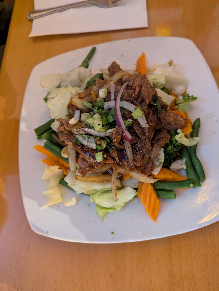 The Thai dishes show the same level of attention. The basil stir-fry came out sizzling, with fresh herbs added at the very end, a method commonly recommended by chefs trained in Thai cuisine to preserve aroma and texture. The balance of heat, sweetness, and savory notes felt intentional rather than accidental. If you’ve ever read reviews complaining that Thai food can feel one-dimensional, this is the opposite experience. One regular at the next table leaned over and said this is our go-to comfort food place, which matched my impression perfectly.